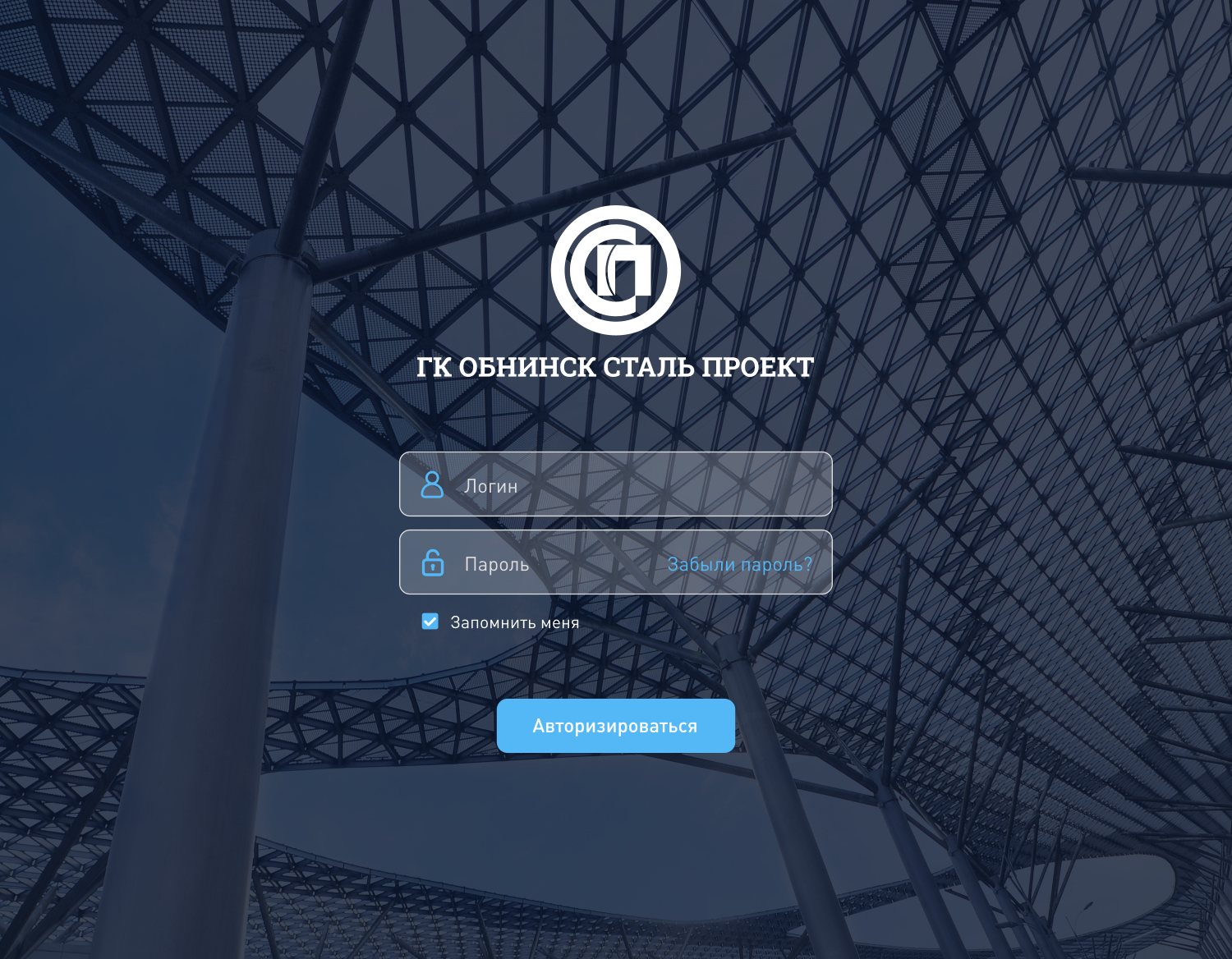 Разработка формы авторизации CRM Обнинск Сталь Проект